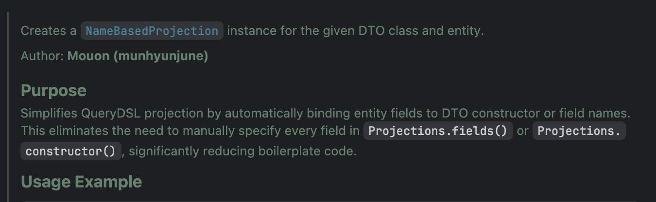 초기 목표는 단순했다. DTO 생성자 파라미터(또는 필드) 이름과 Q타입의 필드 이름이 같다면, 매번