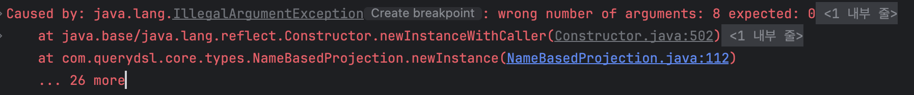 Expression<?>들을 Querydsl이 채워줄 값 시그니처로 넘겨, - 최종적으로 선택된 DTO 생성자를 호출해 인스턴스를 만든다.