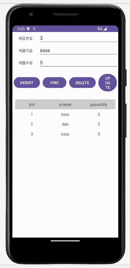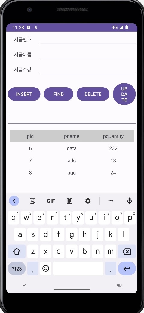 testsql.addTextChangedListener{ valpname =it.toString() valresult =myDBHelper.findProduct2(pname) }실행결과
