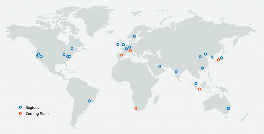 AWS는 전세계를 대상으로 클라우드 컴퓨팅 서비스를 제공하고 있다. 즉 이를 위해 AWS의 제고우영역 또한 전 세계에 분포 되어 있다는 것 이다.