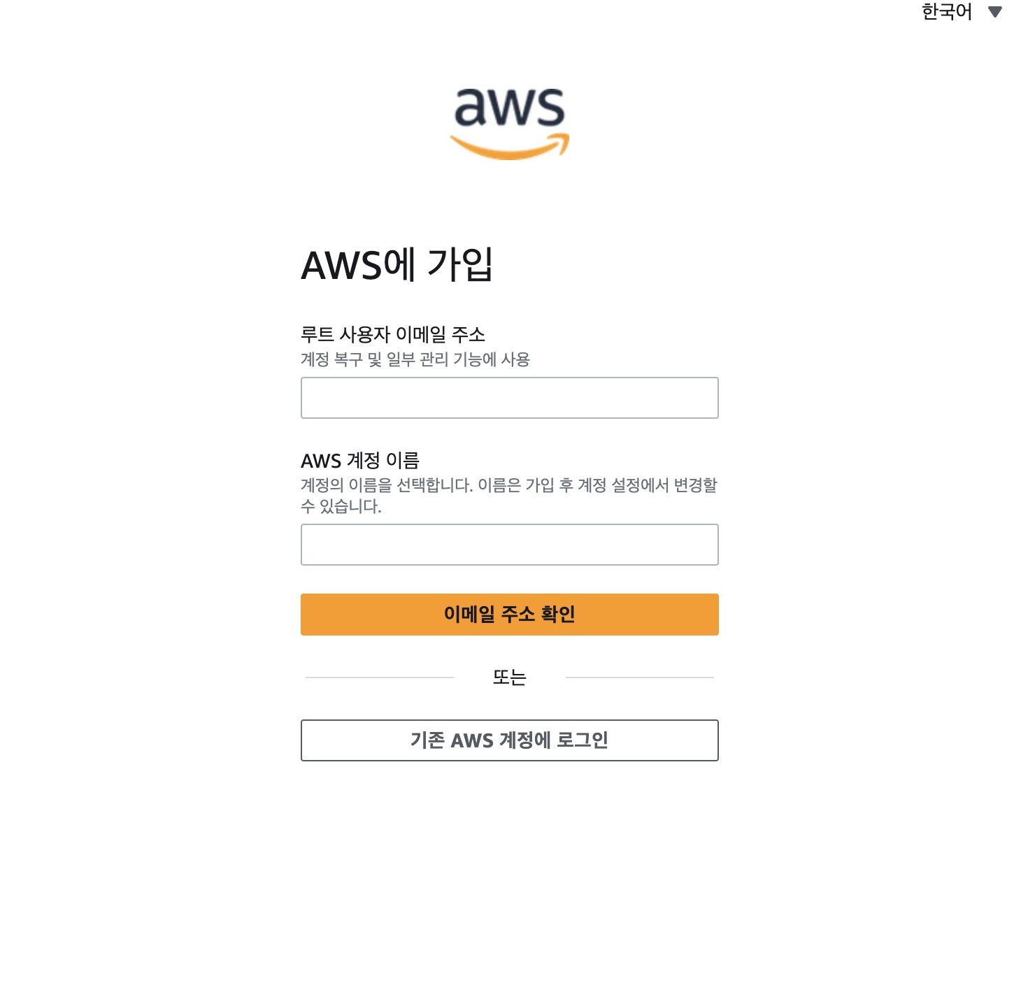 AWS를 사용하기 위해서는 AWS의 계정이 있어야한다. https://aws.amazon.com/ko/ 를 접속해서 계정을 생성해보도록 하자.