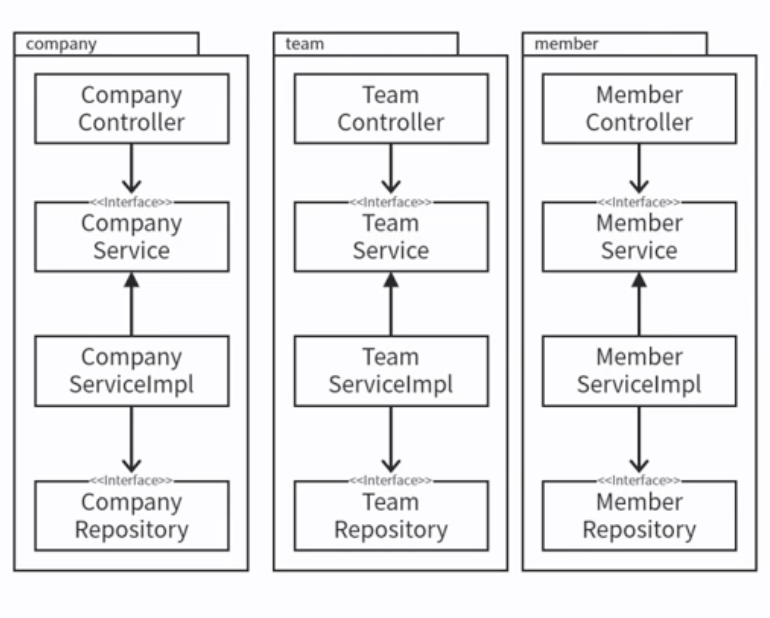 - 구조: 각 기능별로 패키지를 나누는 방식